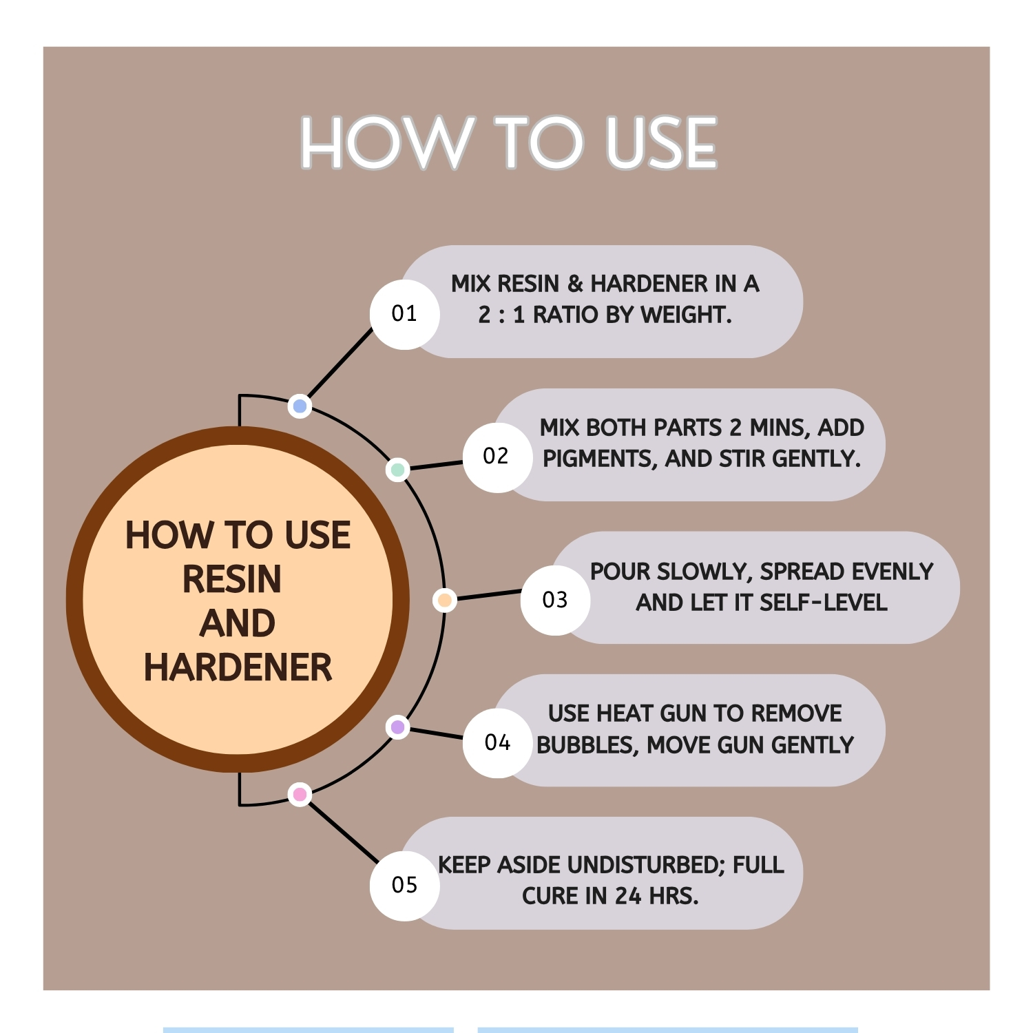 • Protect your workspace: Use plastic sheets; resin is permanent once cured.