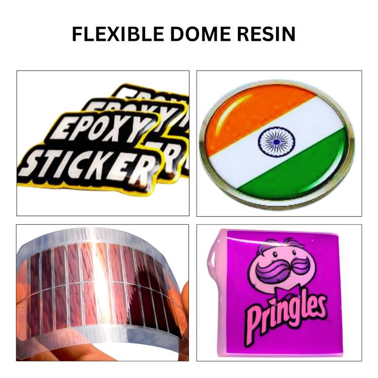 Branding & Logos, Product Labelling, Name Plates & Id Tags, Logo in Automotive & Electronic Industries, Craft & Personalization, Retail Displays. Doming & Coating of Art & Craft Pieces, Resin Jewellery, Keychains, Coasters, Badges, Logos, Nameplates, Trophies, Decorative Emblems, Dashboard Panels, Crafts, Protective Domes, Embedded Photo Badges, Resin Stickers, Raised Lettering Accents. This product is versatile and can be used for Doming, casting, coating, encapsulating and potting numerous applications including domed decals, labels, solar panels art & craft work etc.