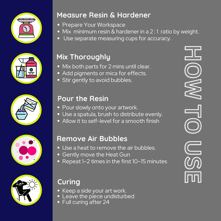 Protect your workspace: Use plastic sheets; resin is permanent once cured.