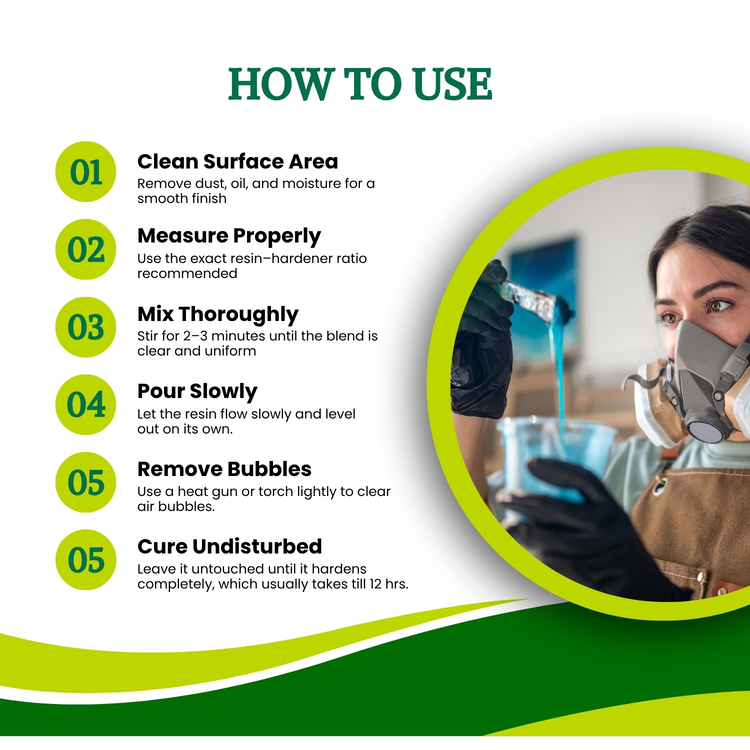 Protect your workspace: Use plastic sheets; resin is permanent once cured.