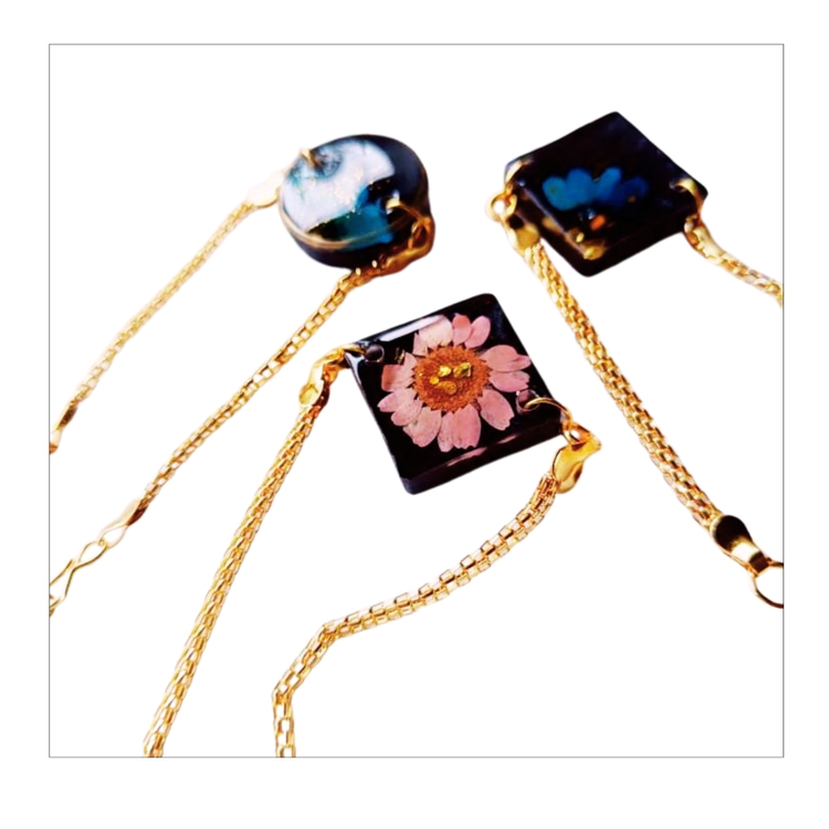 Coating on canvas & paintings, designer coasters, trays, handcrafted jewellery, keychains, curated photo frames, bespoke decorative creation, designing resin clocks, geode art, ocean wave effects for artistic projects, encasing flowers, marriage garlands and keepsakes in transparent resin blocks, coating on drawer knobs, other small decorative items.